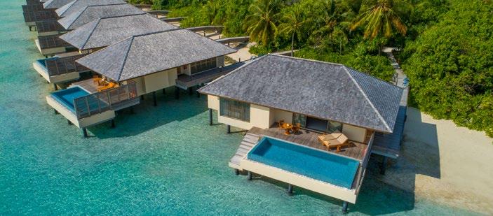 Arena blanca y suave, mares cristalinos, una hermosa laguna de ensueño completada con impresionantes vistas del atardecer hacen que alojarse aquí sea una experiencia inolvidable. Escondidas en nuestros jardines, sobre la playa o sobre el agua, nuestras 129 villas y bungalow de estilo contemporáneo ofrecen una elegante elección en Maldivas.