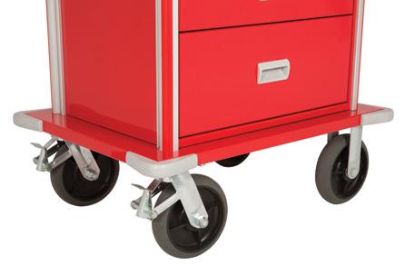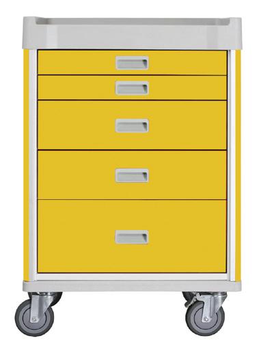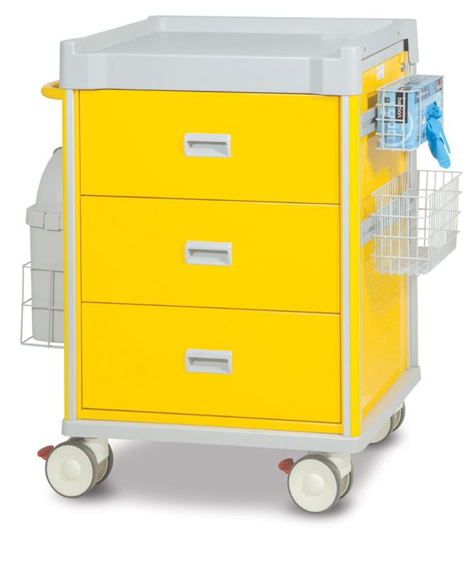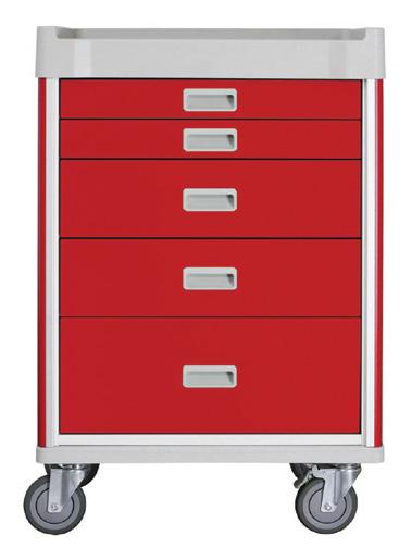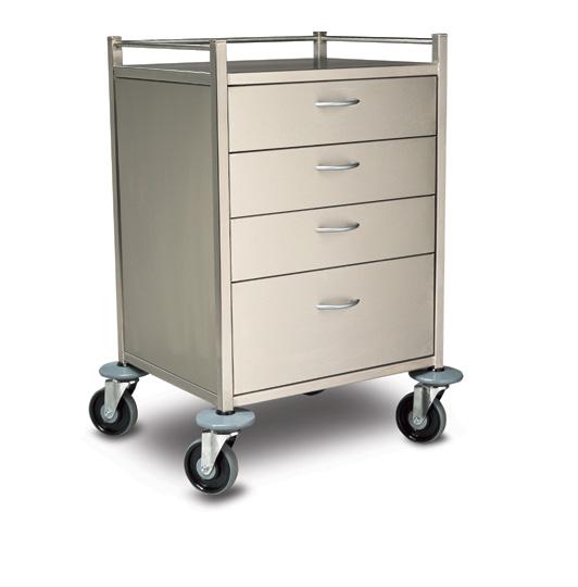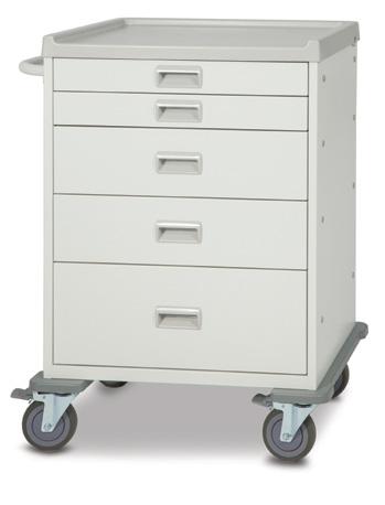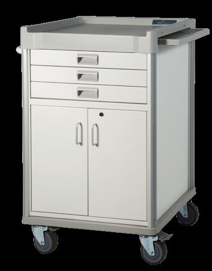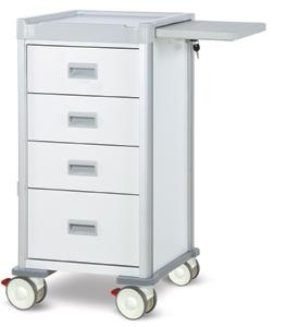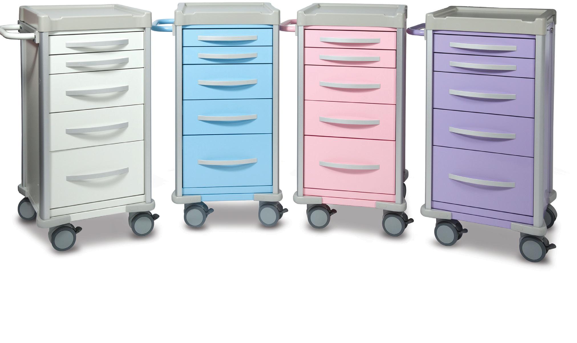 • Lightweight design and profile simplify movement and steering Smooth panels, work surface and seamless drawers promote simple cleaning for infection prevention