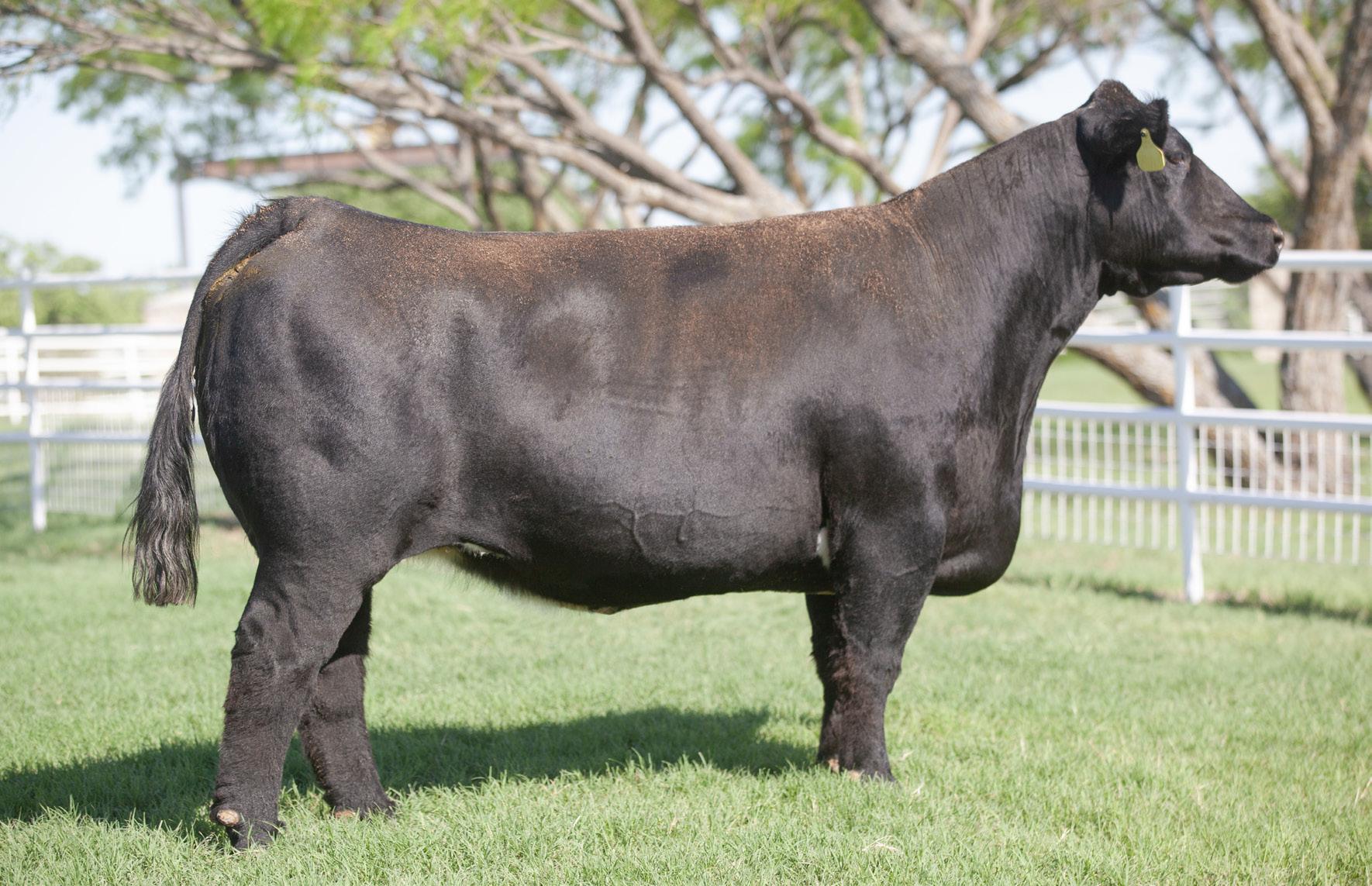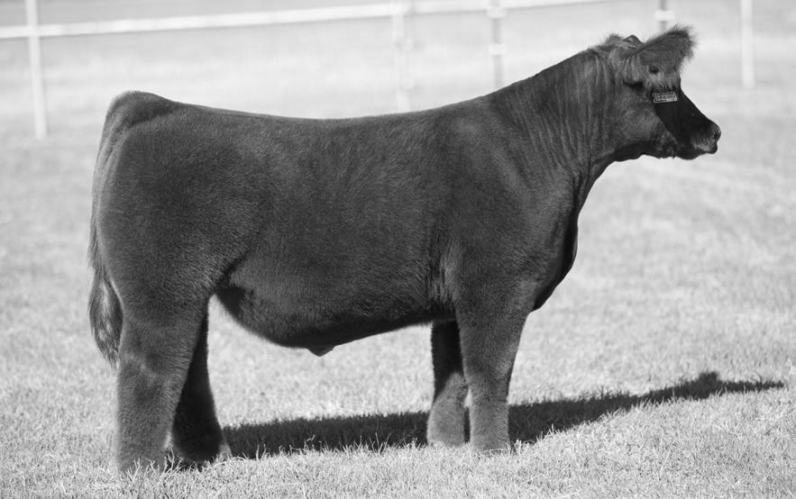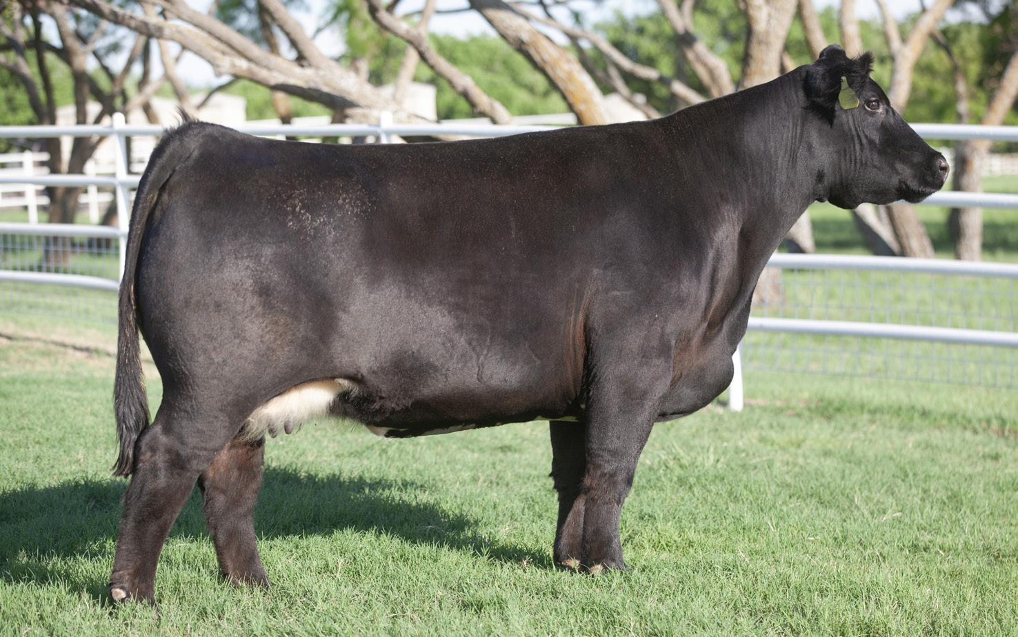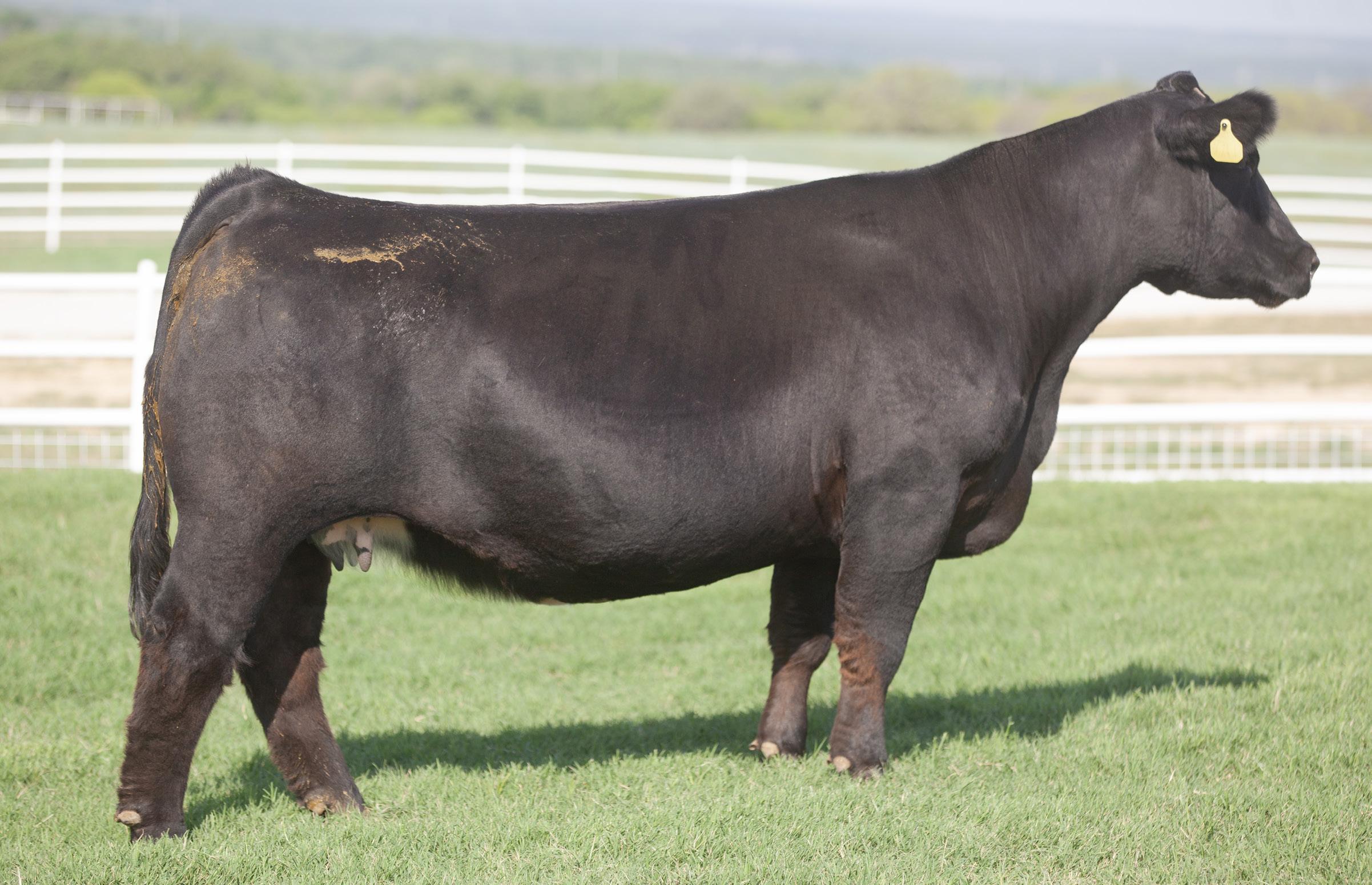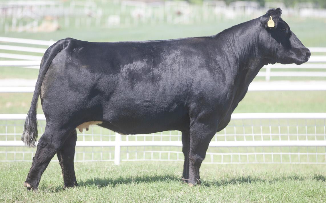 • A Brangus type female that is saturated with density and power from end to end. For all the power, she does not sacrifice skeletal integrity.