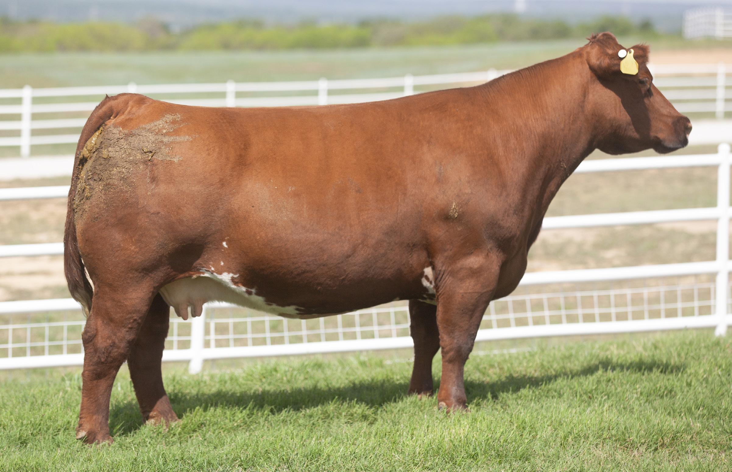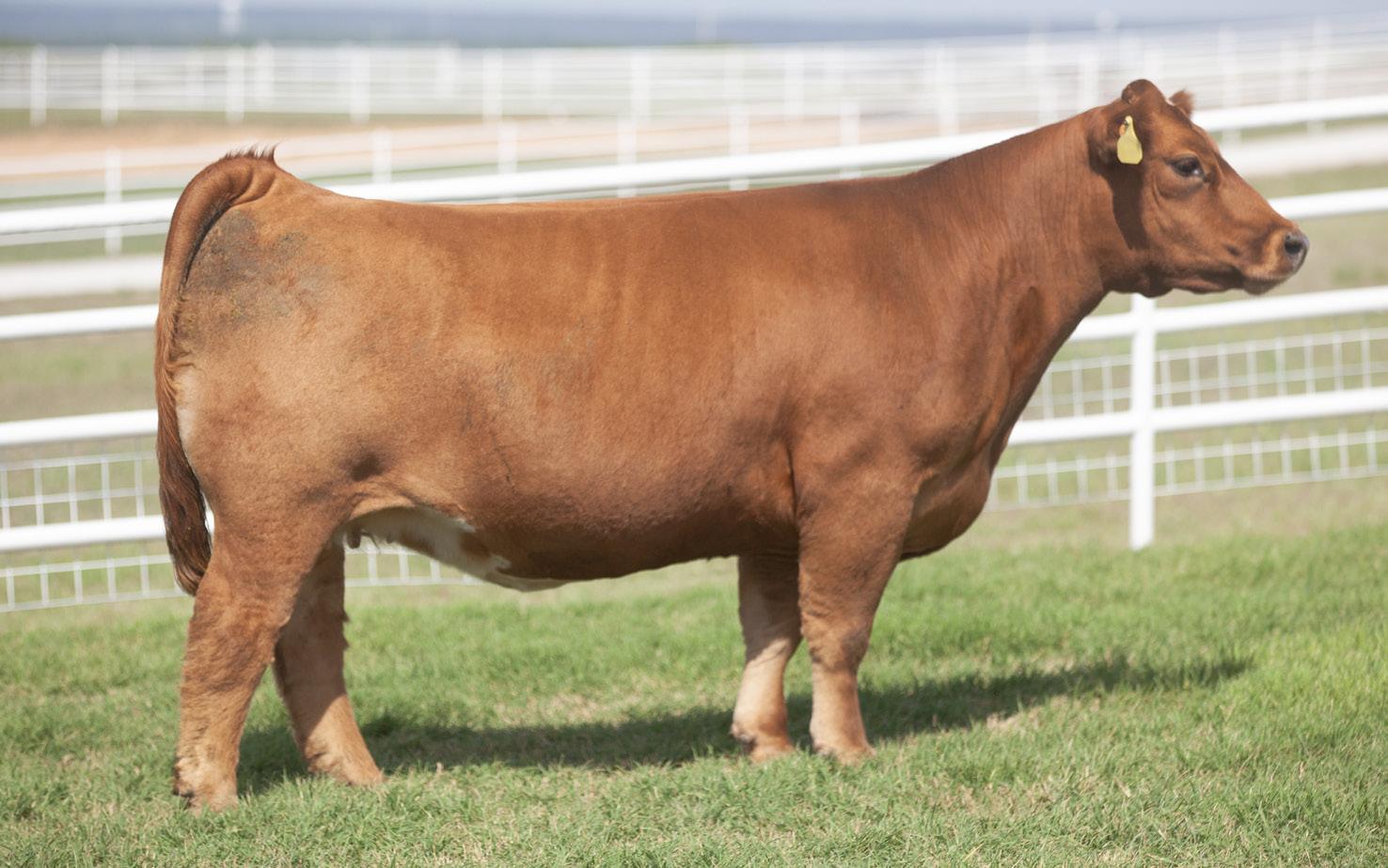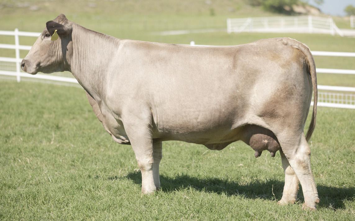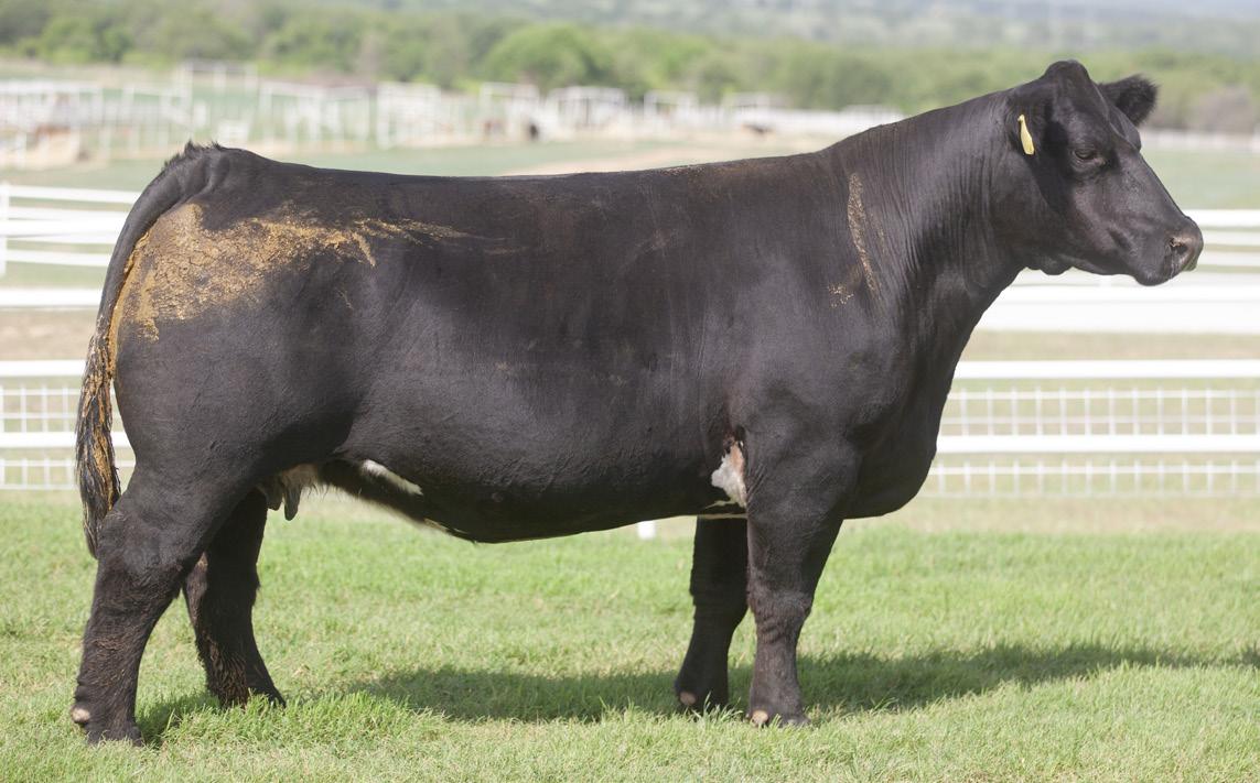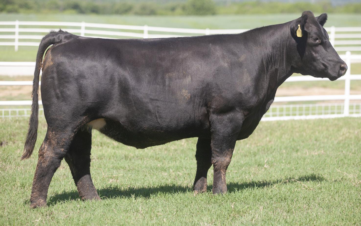 • A Brangus type female that is saturated with density and power from end to end. For all the power, she does not sacrifice skeletal integrity.