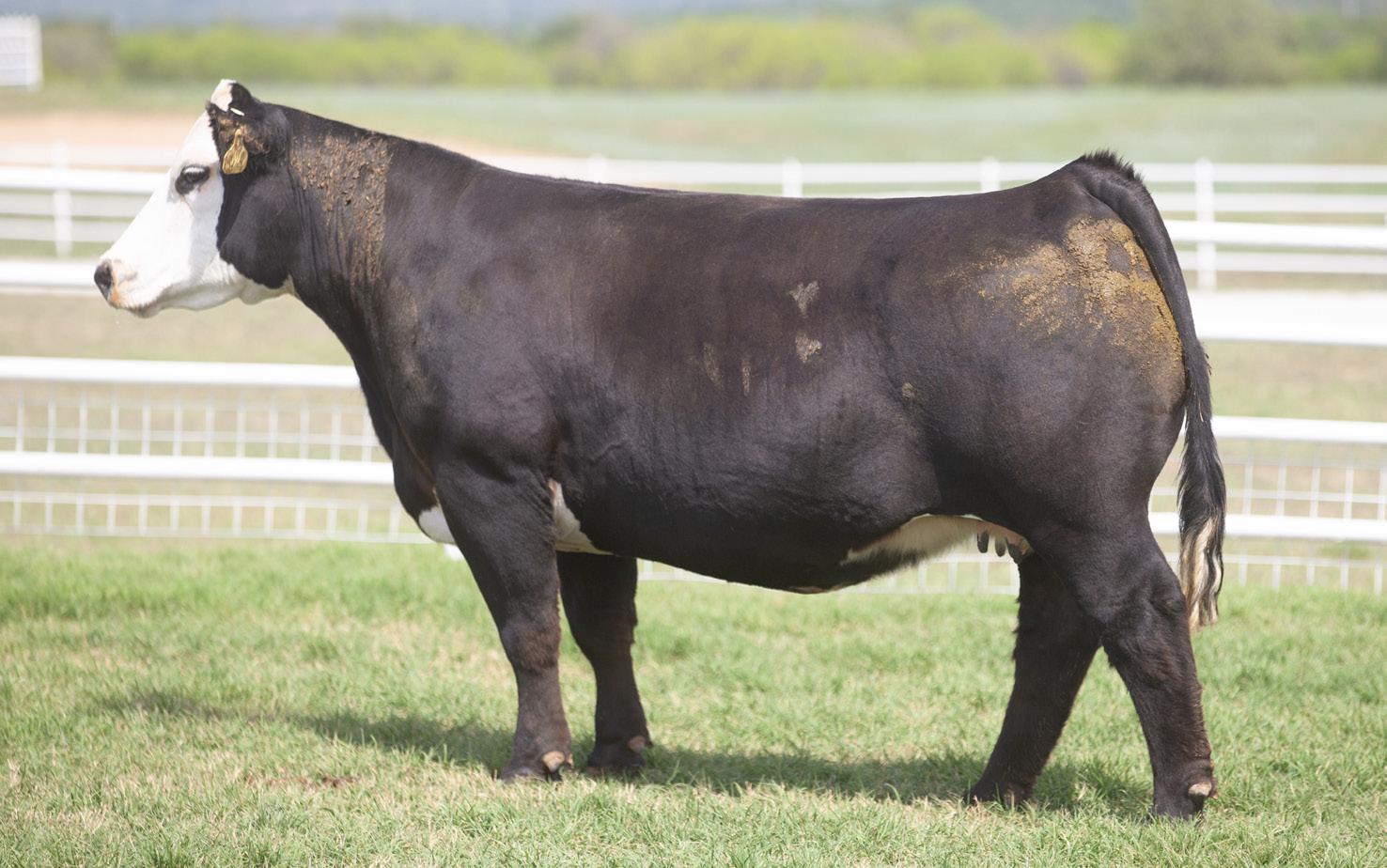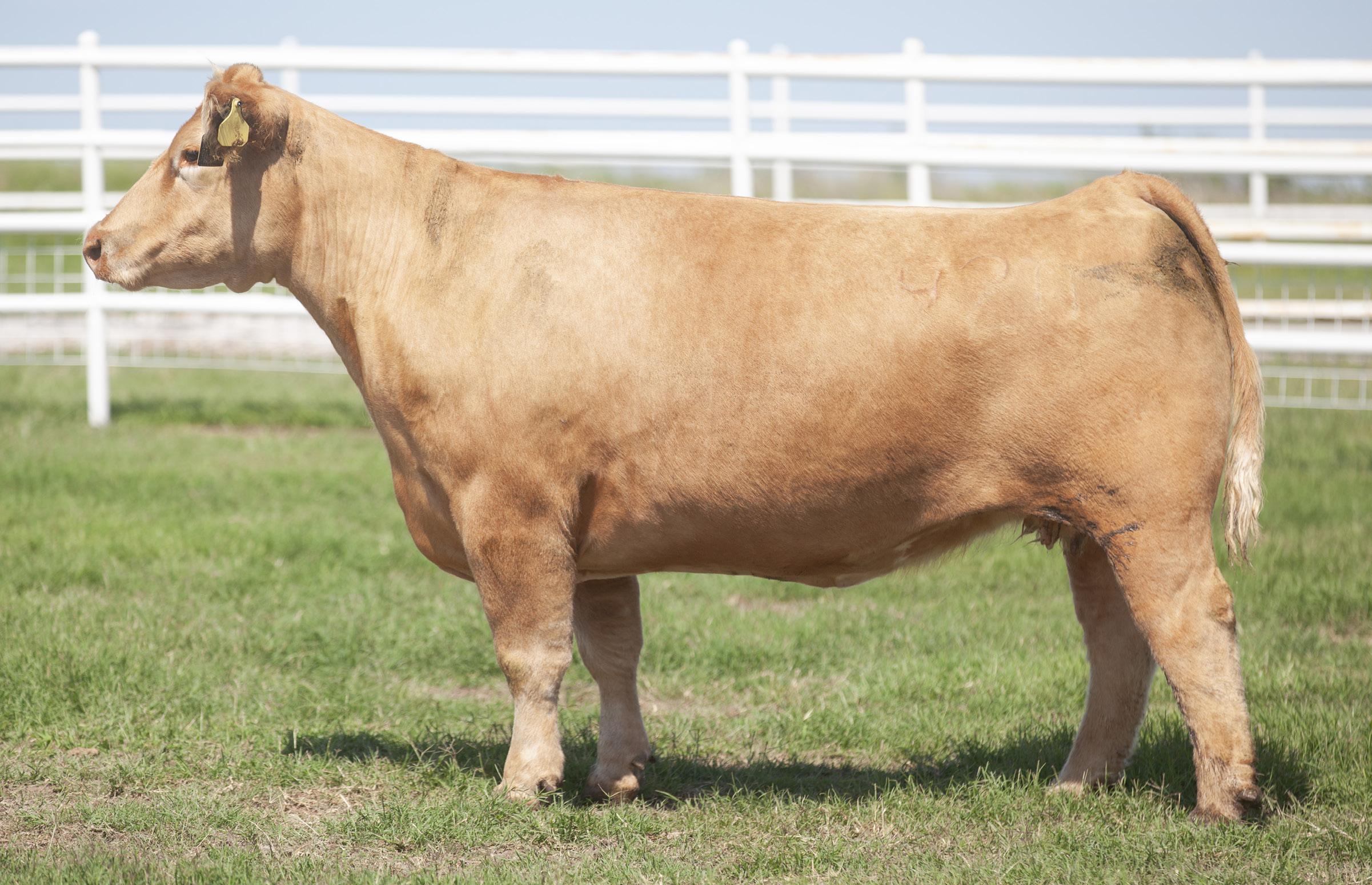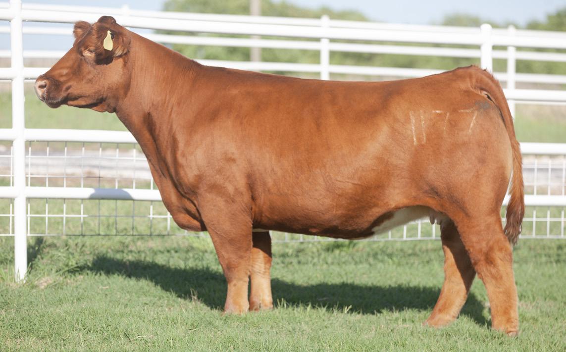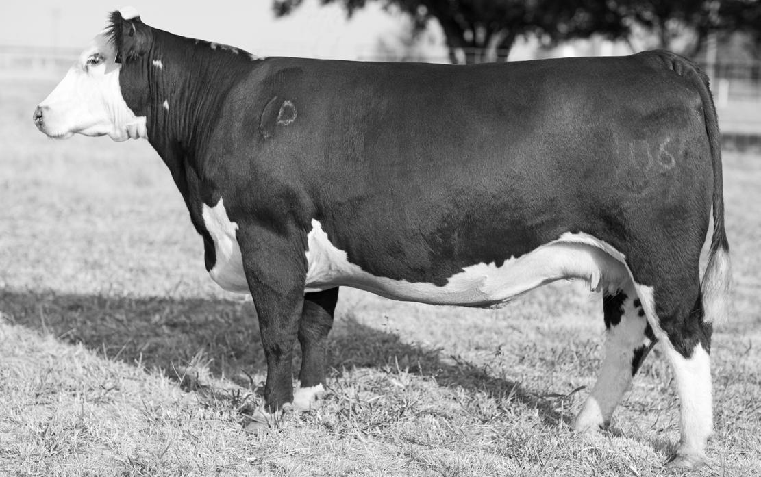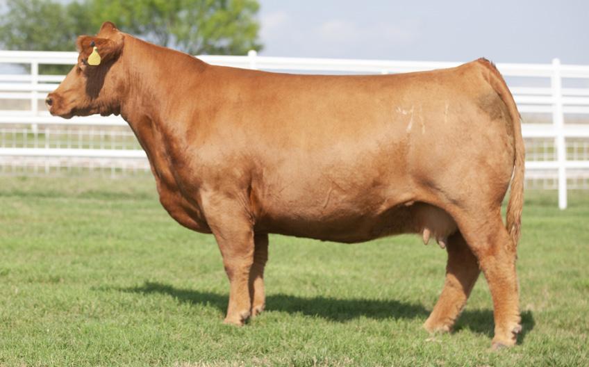 • A Brangus type female that is saturated with density and power from end to end. For all the power, she does not sacrifice skeletal integrity.
