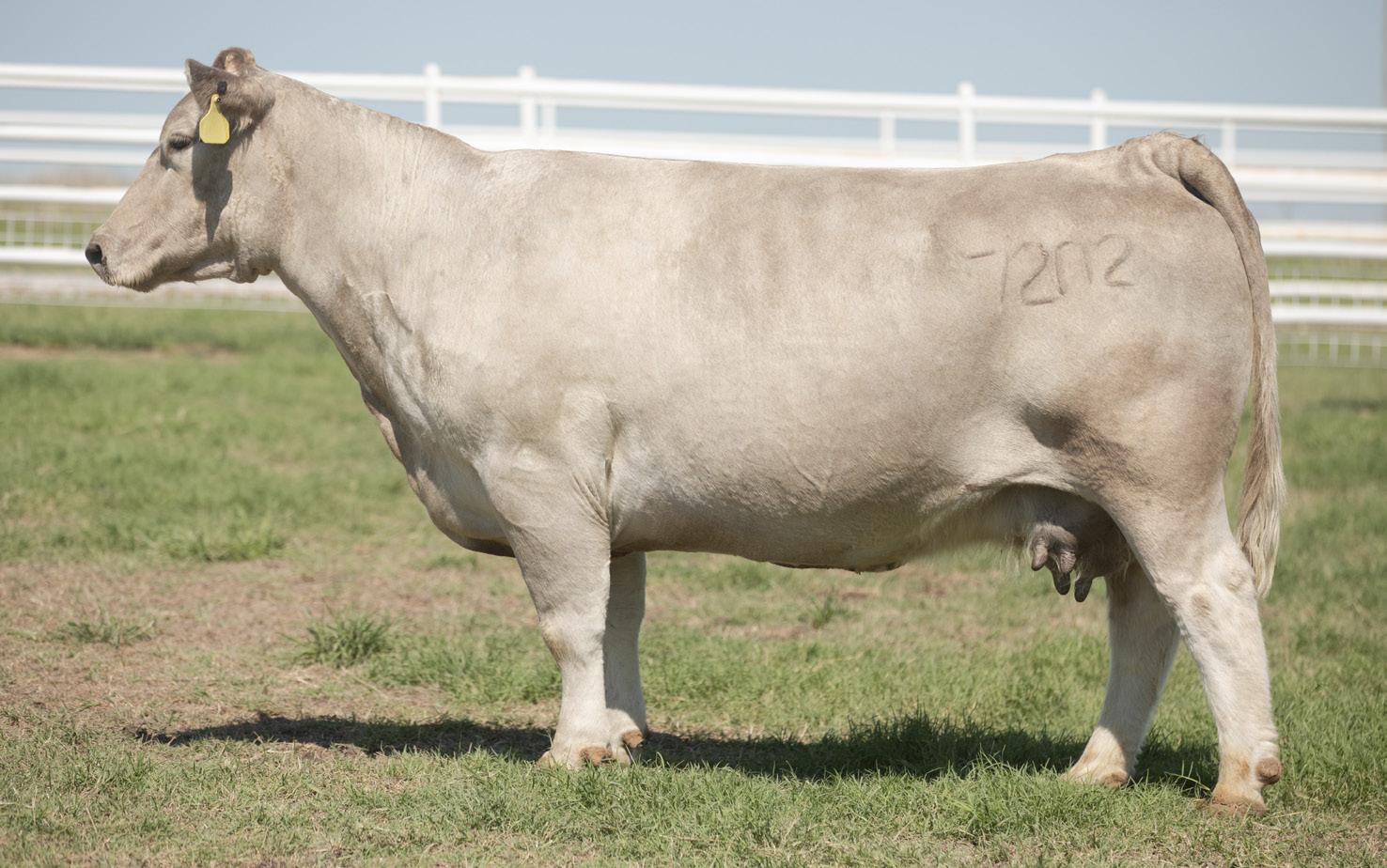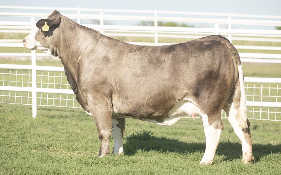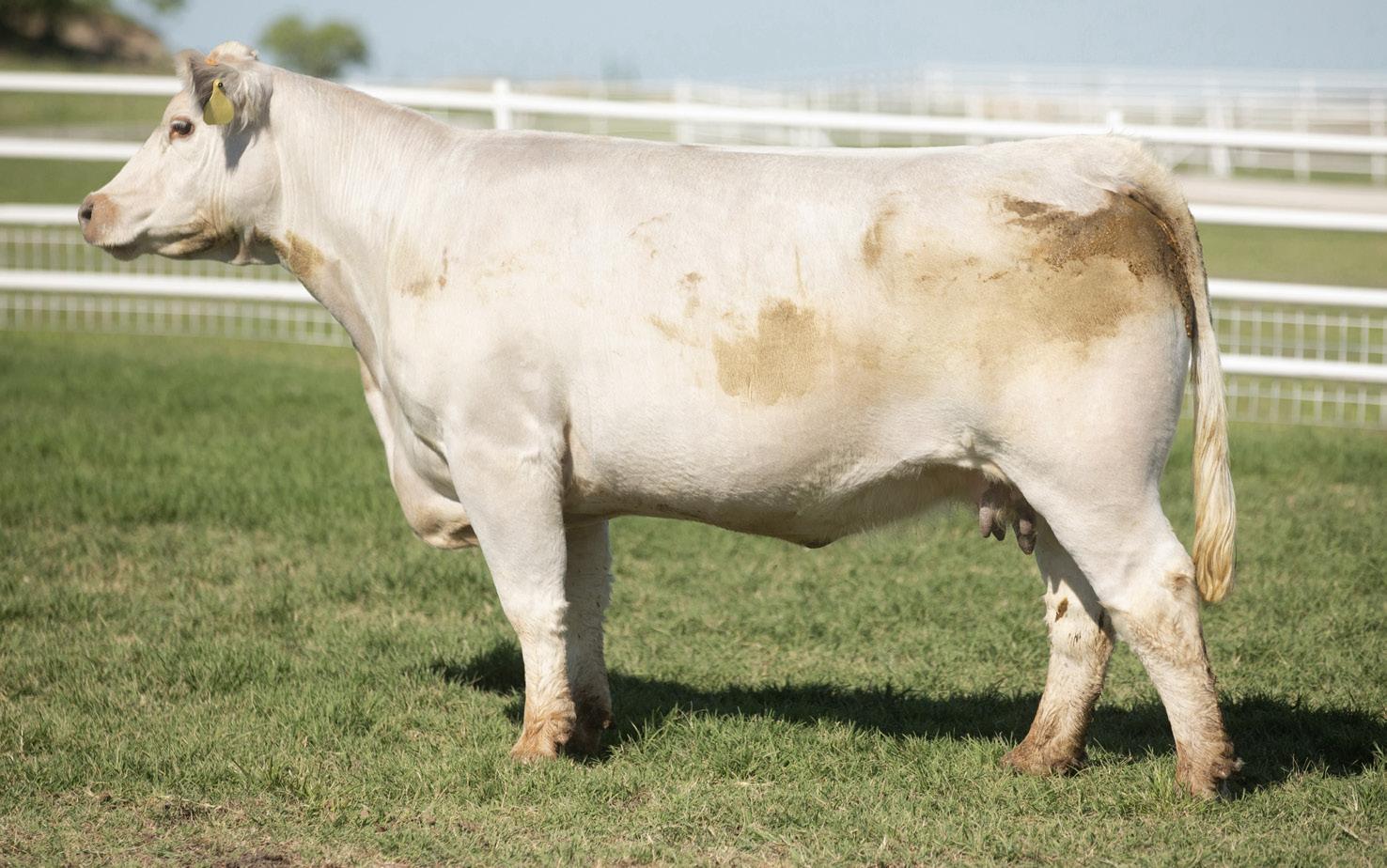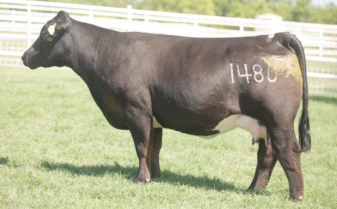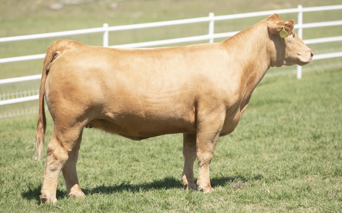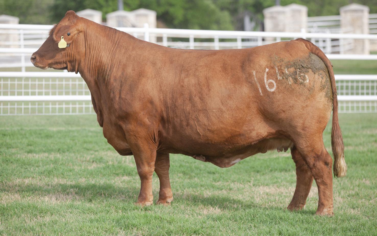 • A Brangus type female that is saturated with density and power from end to end. For all the power, she does not sacrifice skeletal integrity.