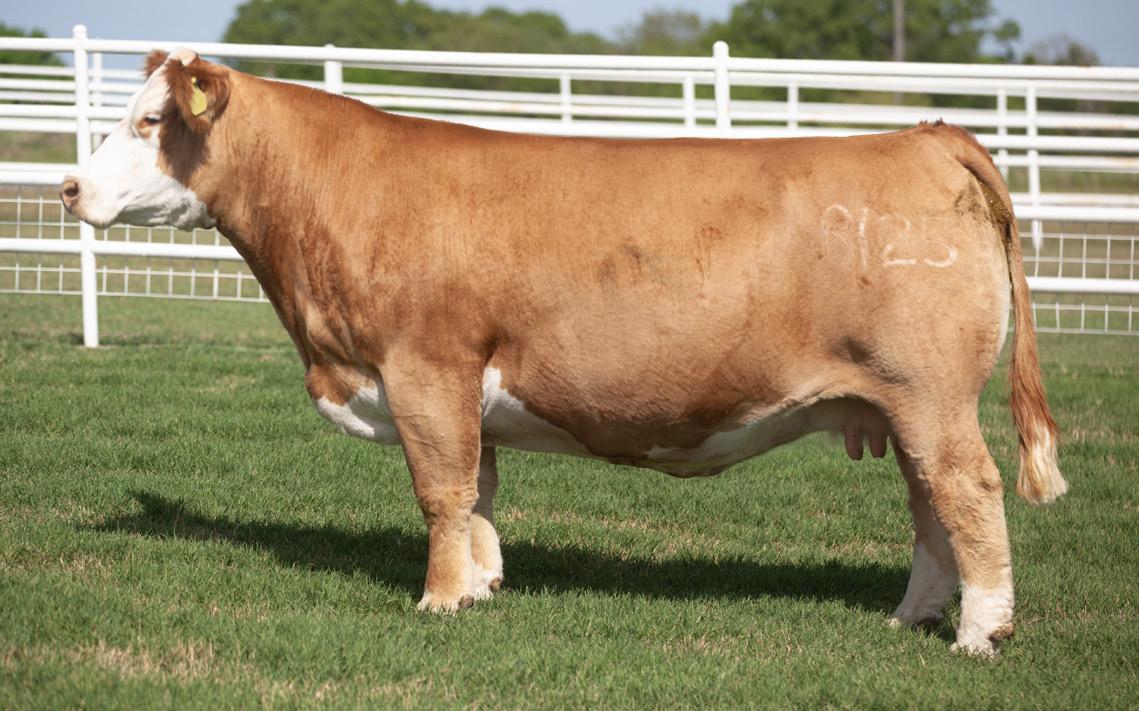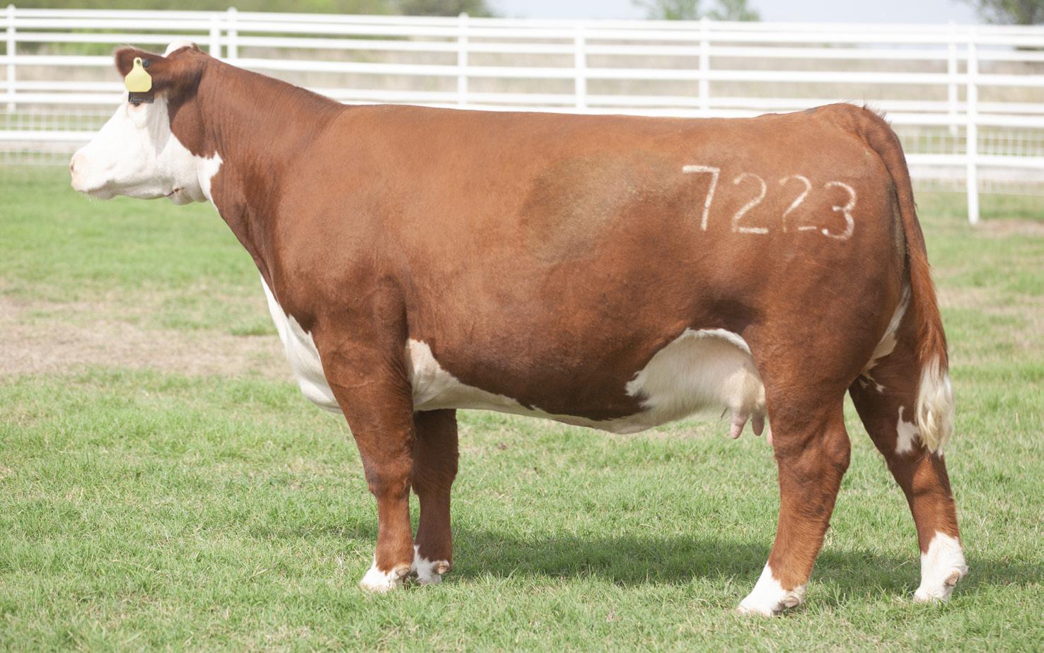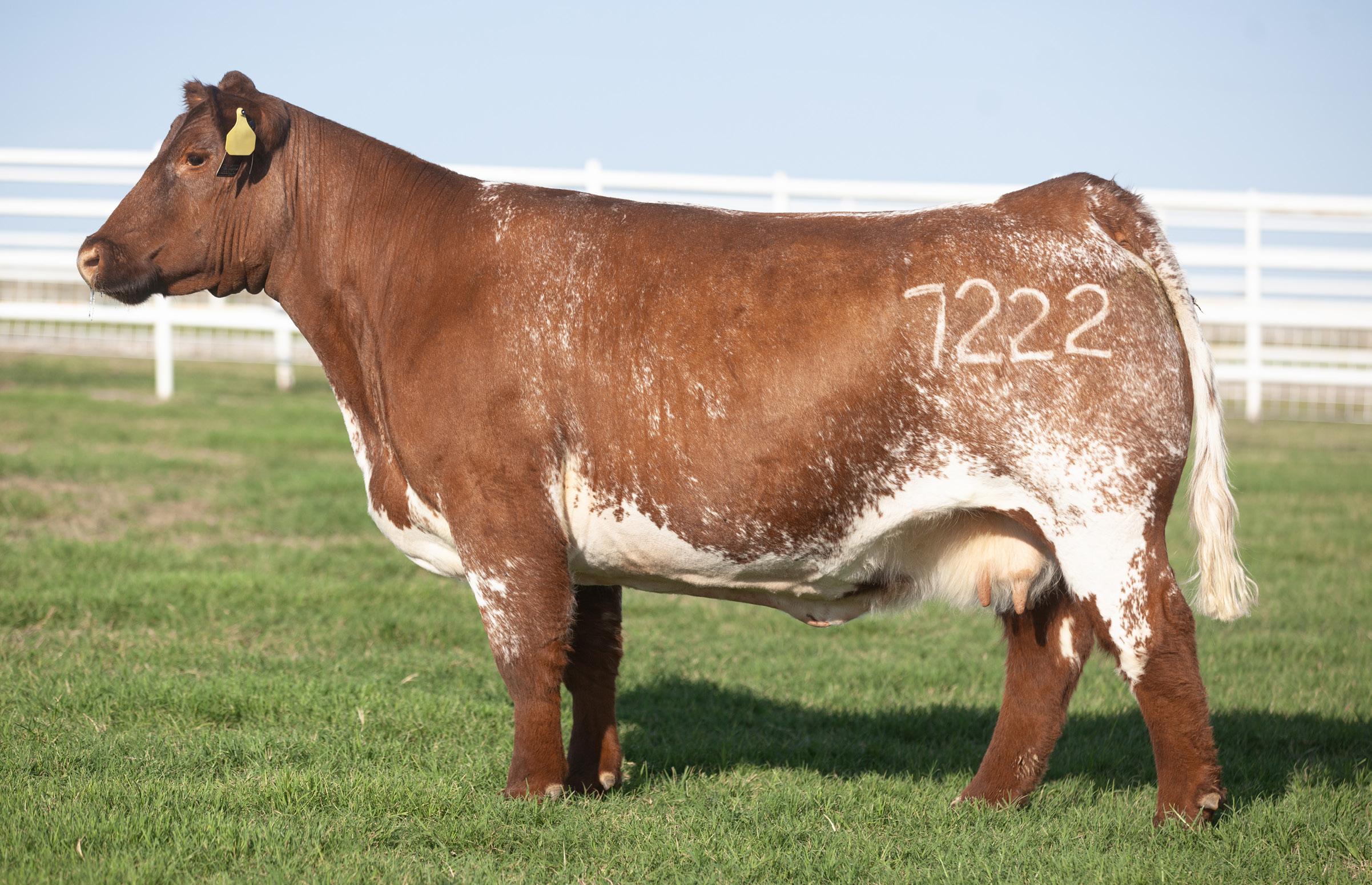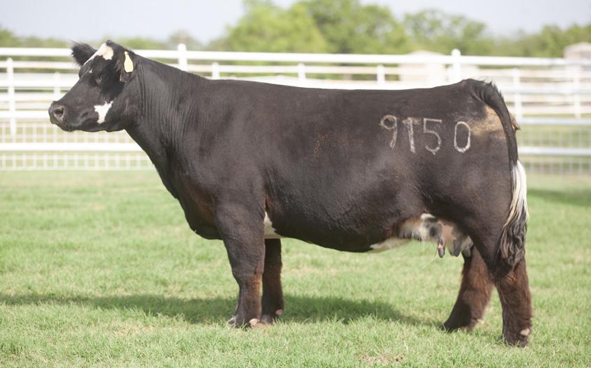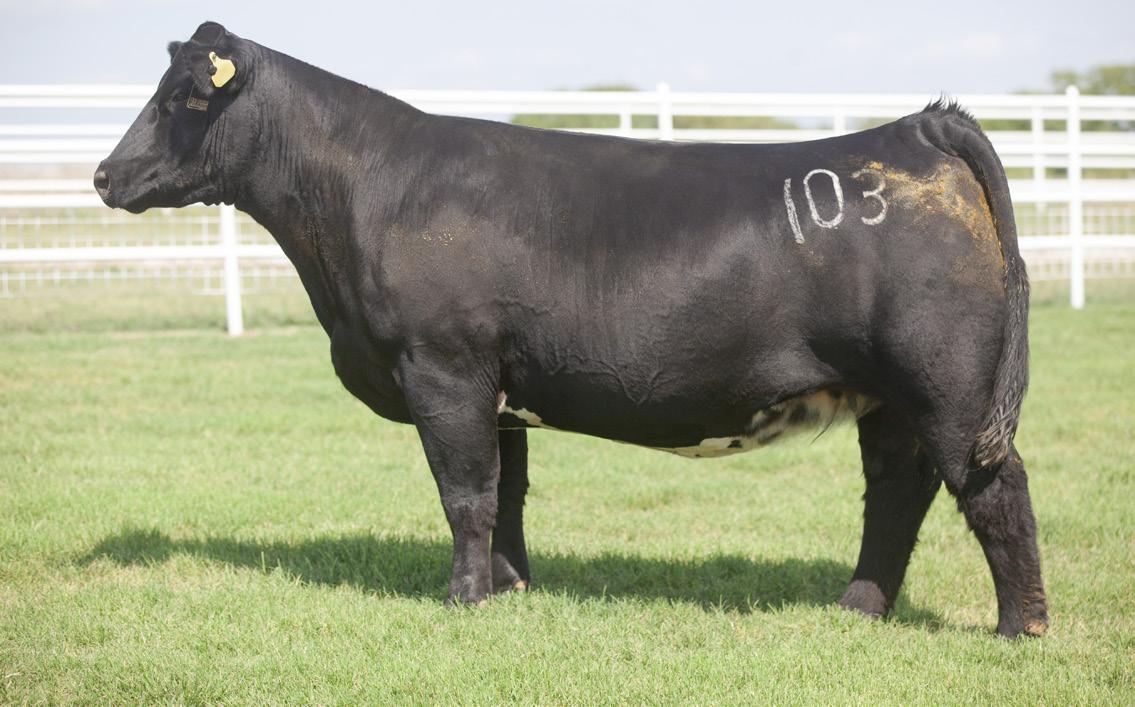 • A Brangus type female that is saturated with density and power from end to end. For all the power, she does not sacrifice skeletal integrity.