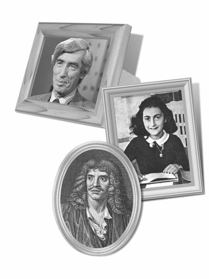 3) Molière mais son vrai nom, Jean-Baptiste Poquelin. né en 1622, à Paris. un des grands noms du théâtre français. acteur et metteur en scène. aussi l’auteur de nombreuses pièces de théâtre : Tartuffe, Les Femmes savantes, etc. mort sur scène, en 1673, pendant la représentation du Malade imaginaire.