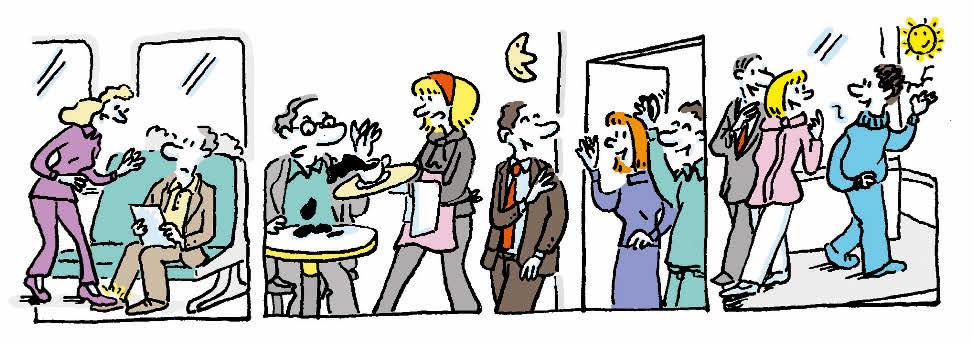 UNE DOUBLE PAGE DE DIALOGUES NOUVEAUX OU ACTUALISÉS, qréalistes et plaisants. Ils mettent en situation, à travers des faits de la vie quotidienne, des personnages variés par leur âge, leur catégorie socioprofessionnelle, et donc par leurs préoccupations. Le contenu grammatical de ces dialogues est léger, pour permettre aux apprenants de se concentrer uniquement sur les nouveautés lexicales. Ces dialogues sont enregistrés sur un CD encarté dans le manuel et ils sont illustrés de photos qui facilitent la compréhension de la situation de communication. Pour travailler la compréhension orale, des activités guidées sont proposées pour chaque dialogue. Il est fortement recommandé d’écouter les dialogues avant de les lire.