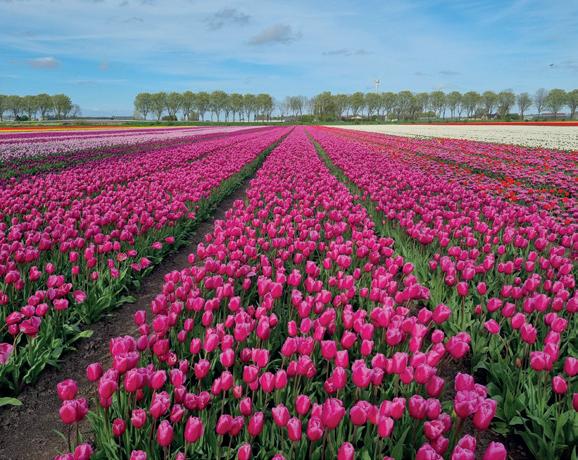 Jeden Frühling verwandeln blühende Tulpenfelder die westfriesische Landschaft in ein einzigartiges, farbenfrohes Mosaik. Die Hauptblütezeit ist von Ende März bis Anfang Mai – ein Paradies für Fotospots!