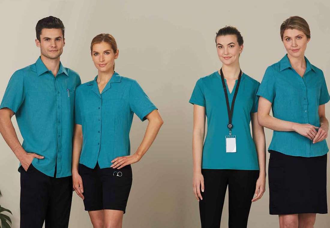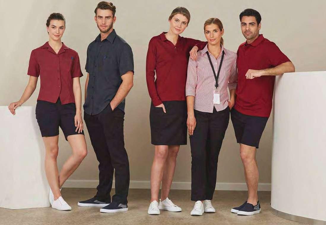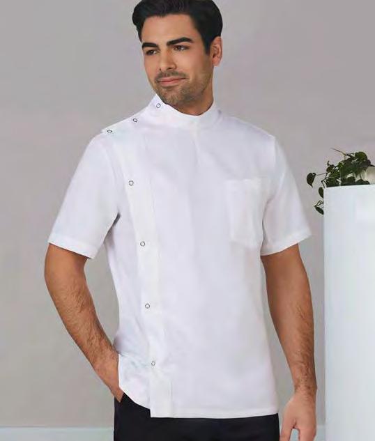 100 % Polyeste r M e chani c al St ret ch. Stud but t on s fro nt, left ch est p ocke t, rou n d n eck with stud but ton, b ac k w ai st ba nd wit h two p lea ts for bet t er shape .