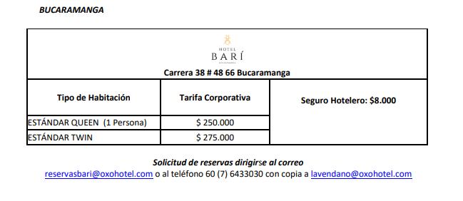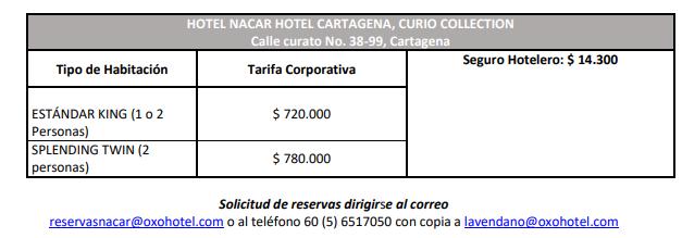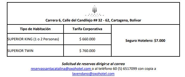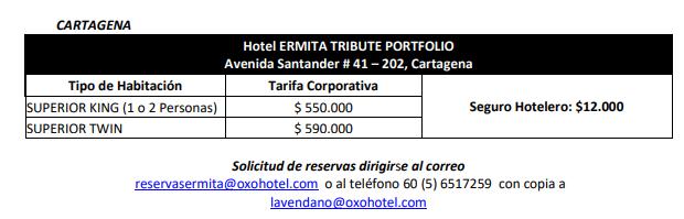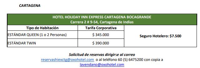 No aplican tarifas en las siguientes eventos: Cartagena: Semana Santa/temporadas altas de vacaciones.