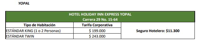 Vigencia de tarifas en Yopal, 10 enero 2024 al 12 enero 2025