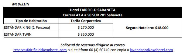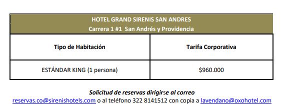 No aplican tarifas en las siguientes eventos: San Andres: Semana Santa/temporadas altas de vacaciones.