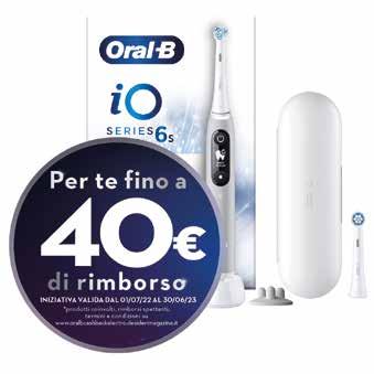 2499 Acquistando un altro prodotto con prezzo superiore a 49,99€* -50% 49,99 BRAUN RASOI 51-W1000S 3 lame flessibili, con tecnologia AutoSense • Sistema EasyClean: consente una pulizia rapida e semplice 3749 Acquistando un altro prodotto con prezzo superiore a 74,99€* -50% 74,99 1499 Acquistando un altro prodotto con prezzo superiore a 29,99€* -50% 29,99 PANASONIC TAGLIACAPELLI ER-GC53-K503 Da 0,5 a 10 mm in 20 step • Lame in acciaio inox • Autonomia: 40 min • Lavabile PHILIPS REGOLABARBA QP6541/15 OneBlade Pro 360 rade, regola e rifinisce i peli di qualsiasi lunghezza • Batteria agli ioni di litio ricaribile • Pettine di precisione con 14 lunghezze • Wet & Dry • Indicatore stato batteria PHILIPS LAME QP220/50 Kit due lame ricambio 2599 2499 Acquistando un altro prodotto con prezzo superiore a 49,99€* -50% 49,99 ORAL-B SPAZZOLINO ELETTRICO PRO1 900 ORAL-B OXYJET IDROPULSORE MD 20 1499 Acquistando un altro prodotto con prezzo superiore a 29,99€* -50% 29,99 6950 Acquistando un altro prodotto con prezzo superiore a 139€* -50% 139 ORAL-B SPAZZOLINI ELETTRICI IO 6 Nel volantino trovi solo alcuni esempi, la promozione continua nel punto vendita dove troverai tantissimi altri prodotti contrassegnati dal bollo promozionale. Maggiori dettagli in ultima pagina. Regolamento completo nei punti vendita aderenti.