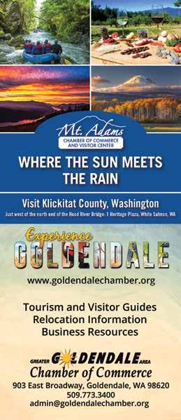 On behalf of the Board of Directors, staff and myself, we welcome you to the north shore of the Columbia River Gorge. The mission of the Mt. Adams Chamber of Commerce is to “Promote business involvement to enhance a vibrant community”. We strive to represent, serve and connect our active members to build and sustain a thriving business community. We provide strong value with networking opportunities, memberonly benefits and advocacy being a few of the main areas of focus. Our website and Chamber Master/ Growth Zone technology allows us to better administer our member’s needs and to serve as the foundation to support you in many other ways. I would love to schedule a visit with you to ensure you are aware of how best to utilize these tools. Please reach out if you want to learn more.