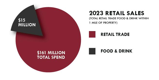 Very dense demographics, with approximately 385,000 residents within a 5 mile radius