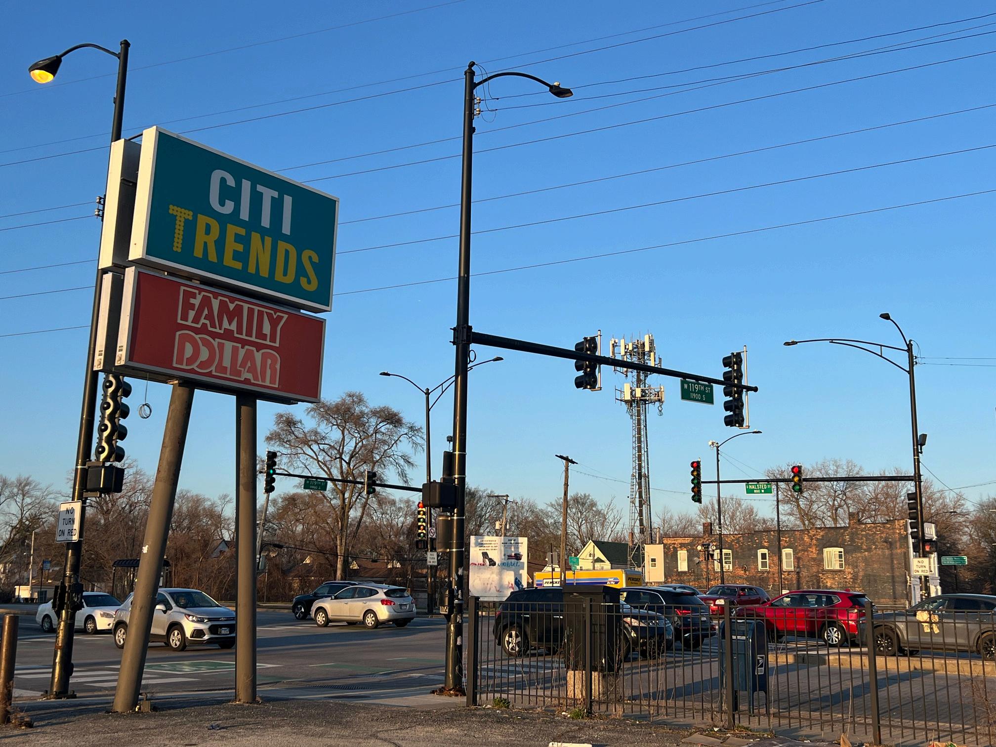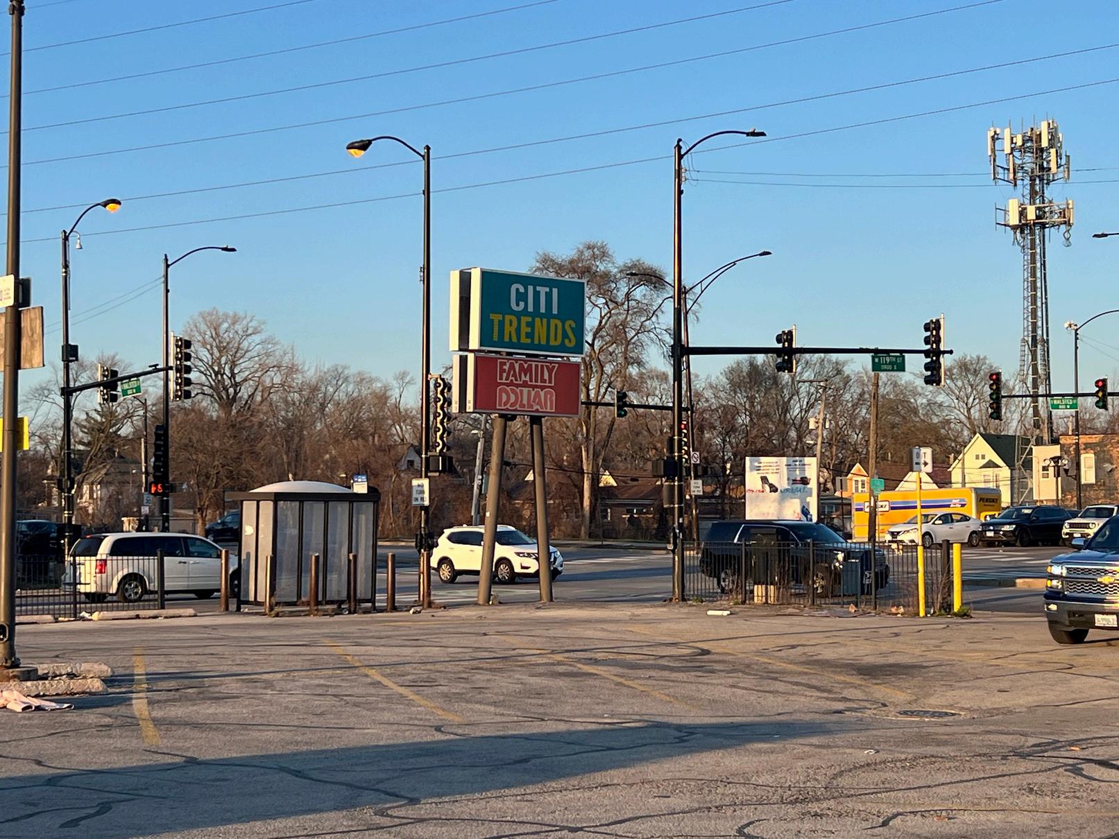 Hard corner of busy 119th & Halsted intersection