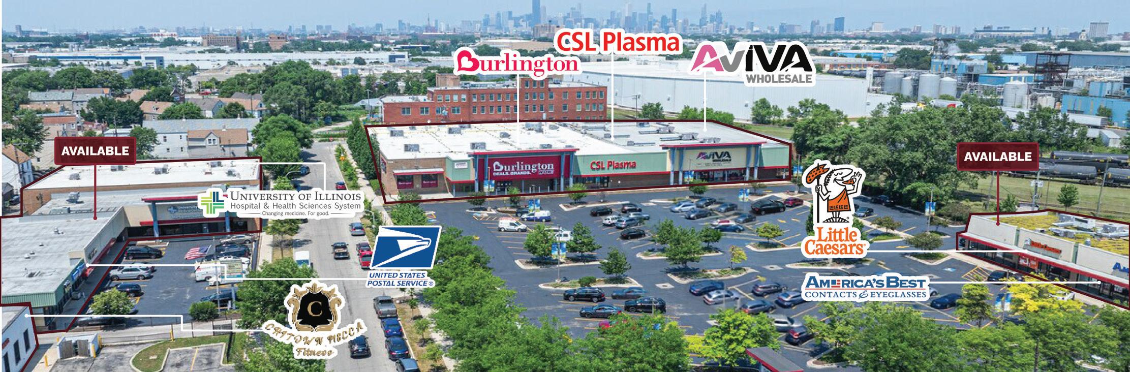 This highly visible shopping center is located in Chicago’s vibrant and diverse Back of the Yards neighborhood. With anchor tenants such as Burlington, America’s Best, Aviva, UI Health, Little Caesar’s, USPS, and CLS Plasma, the plaza enjoys significant local foot traffic. Spaces are limited - join this thriving center today!
