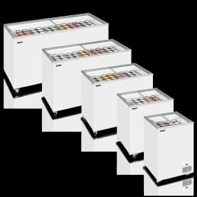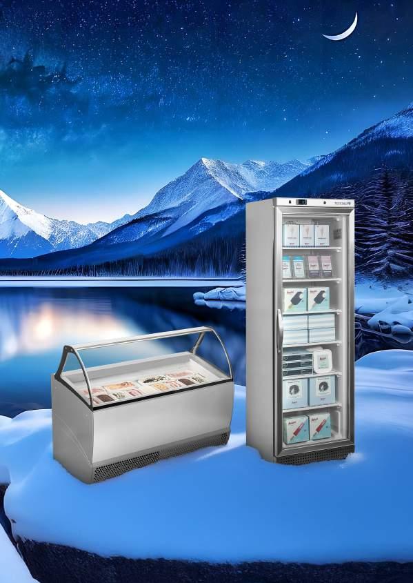 Se recomienda mantener los productos congelados entre -18 / -22°C, aunque algunos helados pueden mantenerse a -14°C para facilitar el servicio. También suministramos congeladores más especializados que pueden alcanzar hasta -45°C.