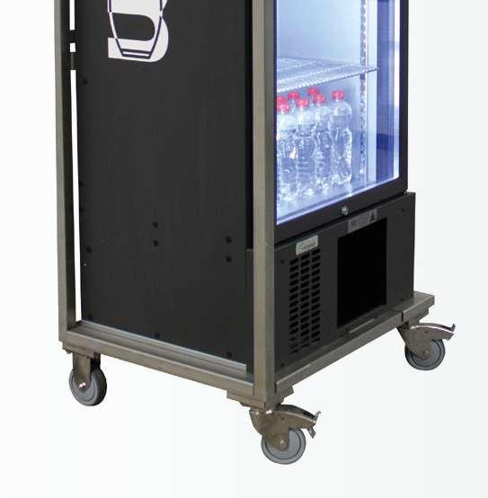 Forevents,SGDuprightbottlecoolersare availablewithastainlesssteelmobileframe.