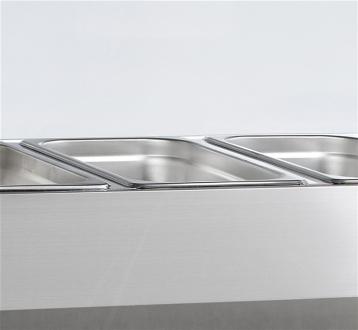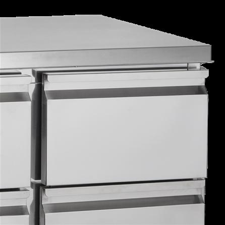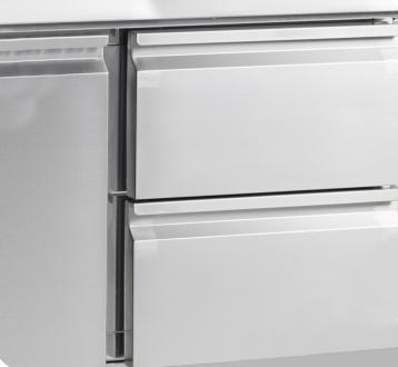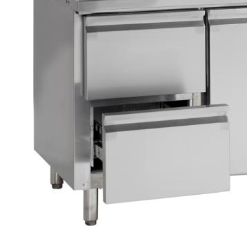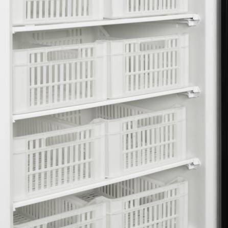 Avec une profondeur intérieure de 65 cm (GN2/1), l’appareil offre un espace de stockage généreux. Le système de dégivrage pratique assure un entretien sans souci, tandis que l’éclairage automatique à l’ouverture de la porte apporte une touche d’élégance. Les joints facilement amovibles et simples à entretenir font de cet appareil un choix particulièrement fonctionnel.