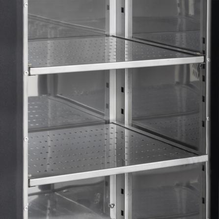 Avec ses tablettes réglables au format, la gamme RK de réfrigérateurs verticaux est conçue pour les cuisines professionnelles. Fabriquée en acier inoxydable SS304 pour la restauration, cette gamme est dotée de solides roues très pratiques pour faciliter le nettoyage. Grâce au froid ventilé, le contenu reste frais, et un thermostat numérique permet de régler la température.