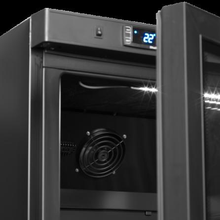 La gamme SCU de réfrigérateurs à boissons offre un généreux espace de présentation et de stockage. Elle est disponible en plusieurs dimensions différentes, avec ou sans caisson lumineux. Il s’agit d’une armoire blanche avec porte vitrée réversible à cadre aluminium noir, tablettes réglables, et éclairage intérieur LED pour une présentation optimale des produits. Un système de froid ventilé assure une température homogène dans l’ensemble de l’armoire.