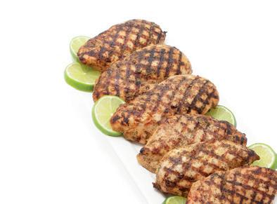 Lean chicken breasts marinated in a mix of tequila, cilantro, jalapeño, garlic, herbs and spices.