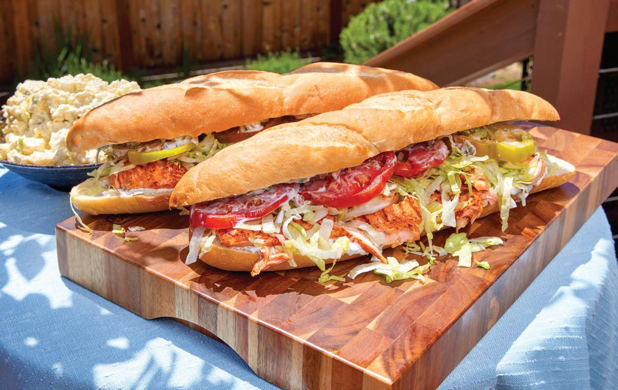 Our PNW take on this traditional Louisiana sub uses grilled Kvaroy salmon served on fluffy French bread. We use Prosser’s spice to blacken the salmon and top it with Nancy’s plain yogurt and Heavenly Fire hot salsa to add a kick of heat to the creamy dressing. Add lettuce and ripened tomatoes for a well-balanced sub.