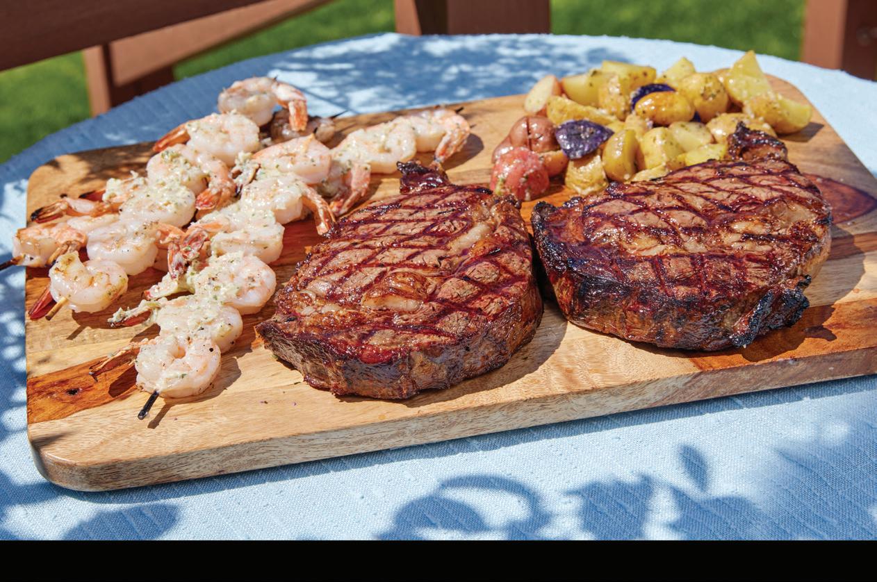 • Season ribeye steaks with a pinch of salt and pepper. Drizzle lightly with olive oil and grill 4 min per side to 130F internal temp for medium rare. Remove from grill and let rest 5 min before slicing/serving.