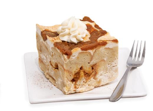 Rich and creamy with warm spices, puréed pumpkin and sweet cream cheese swirls in layers of custard soaked artisan bread.