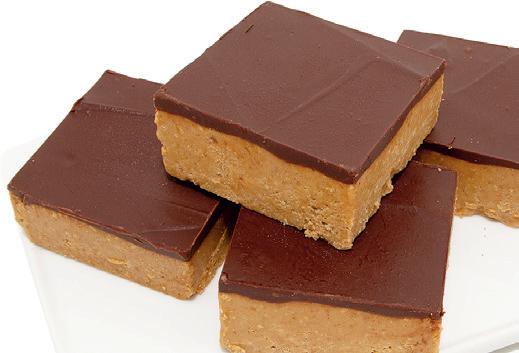 Peanut butter bars topped with thick, chocolate ganache. Super Smoothies