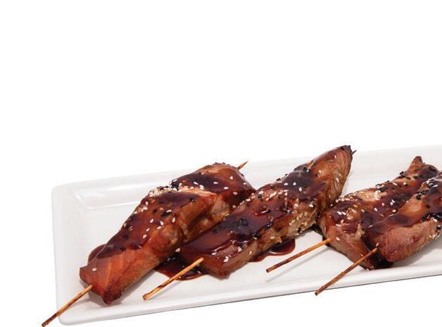 Teriyaki Salmon Skewers Marinated overnight, baked to perfection and slathered with our house-made teriyaki glaze.