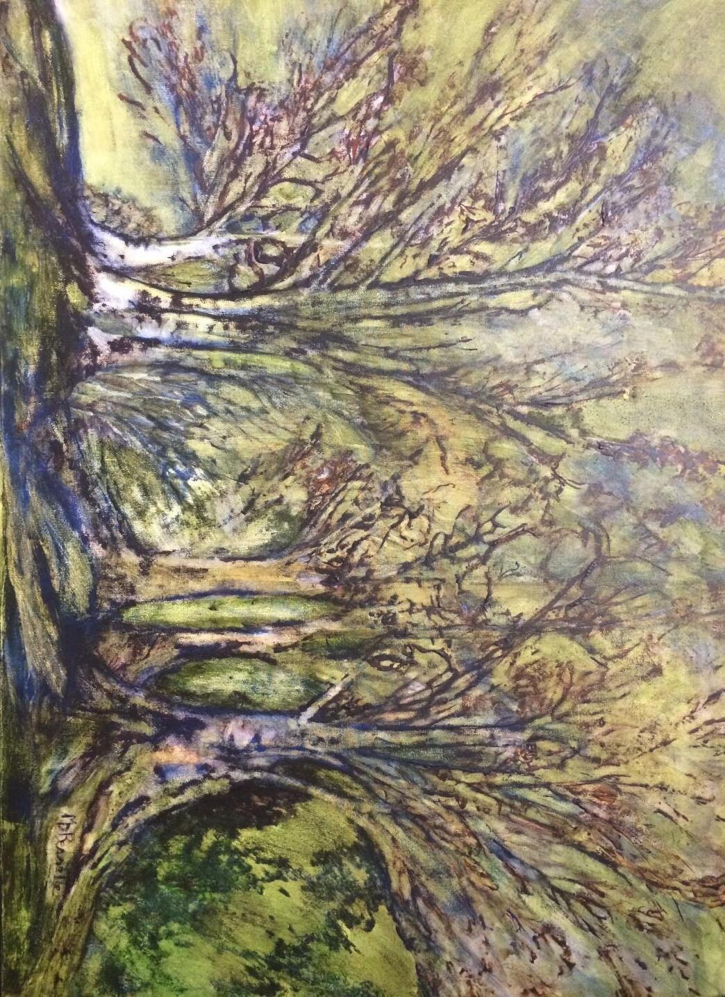 Poète à mes heures quelques mots peuvent s’ajouter parfois à la profondeur d’une toile pour guider le spectateur vers un autre univers.