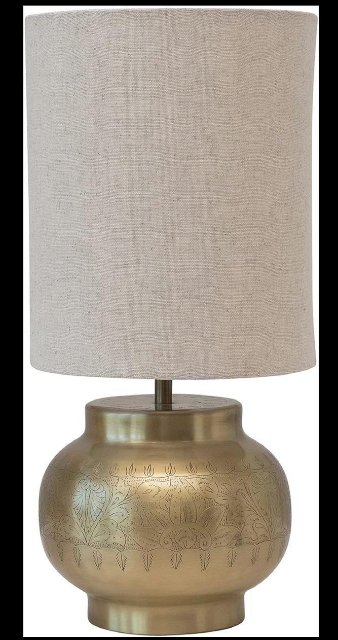 Engraved Antique Brass and Linen lamp by Creative Co-Op $124.99 Green Marble Soap Dispenser $69.99