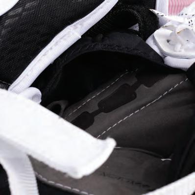 The new shape and structure of the toe cap creates more wrap of the forefoot, with extension into the quarter package to increase torsional stiffness, allowing for better ergonomical structure to relieve pressure around the toes.