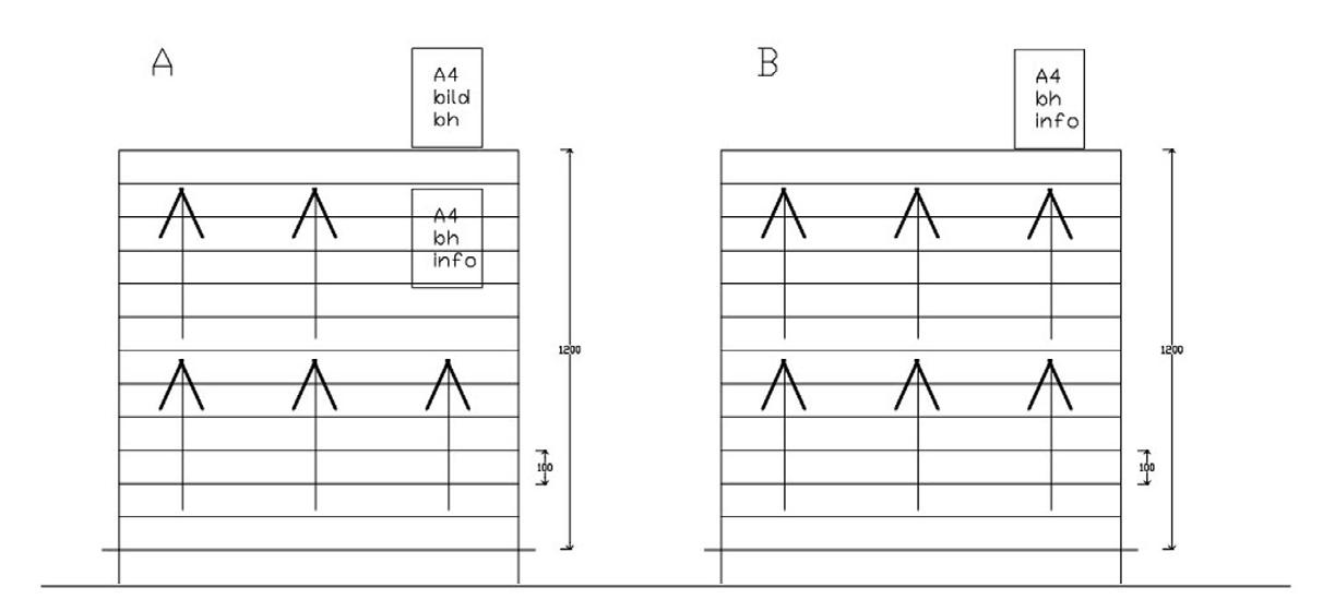• Placera A3 BILDER i skylthållare i linje på hyllan ovanför.