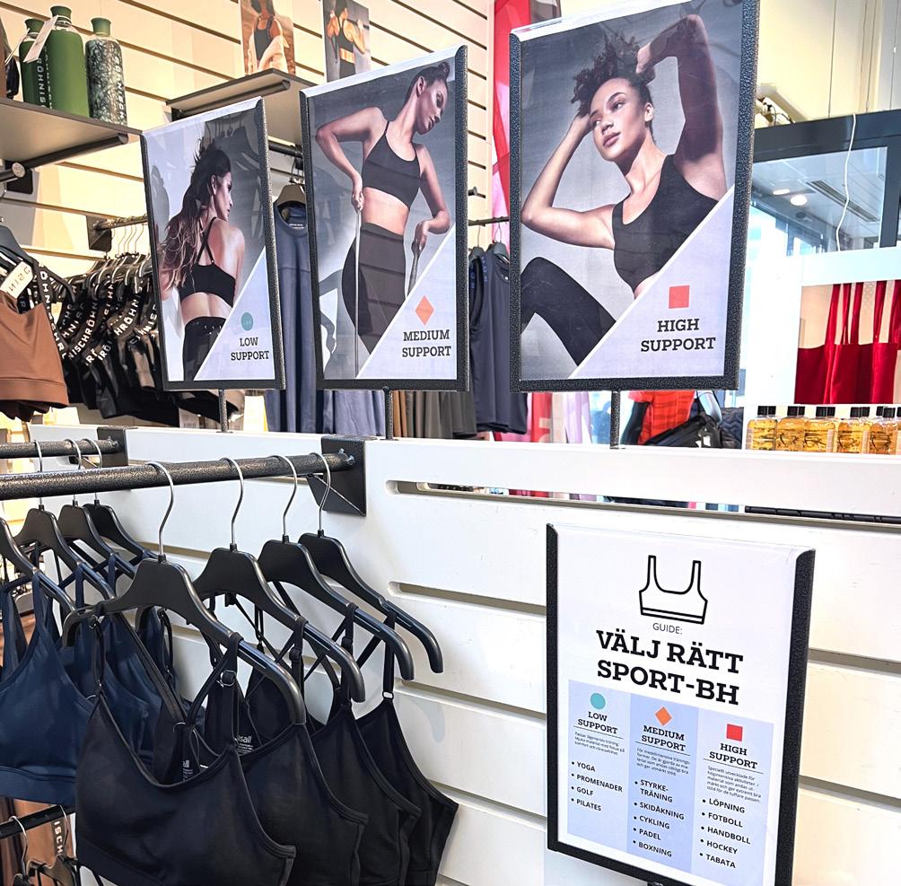 Ju högre intensitet desto mer support kommer också krävas av BH:n. För att guida dessa kvinnor rätt i valet av sport-BH har vi här tagit fram en guide för att ge er inspiration och tips för en mer säljande Sport-BH-yta. Ni finner också information om var ni kan köpa galgar, inredning, bystdockor, skylthållare mm.