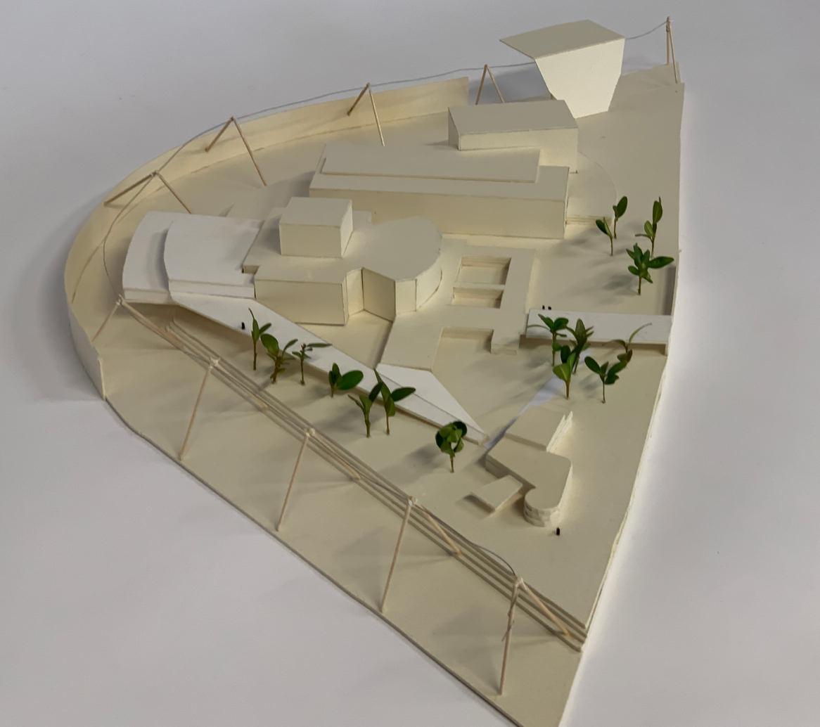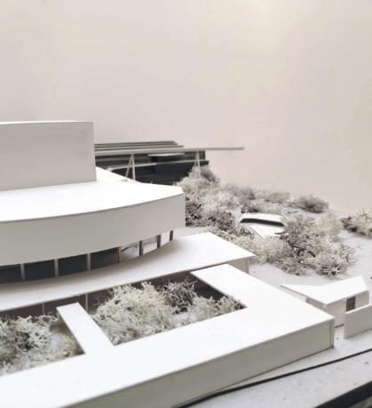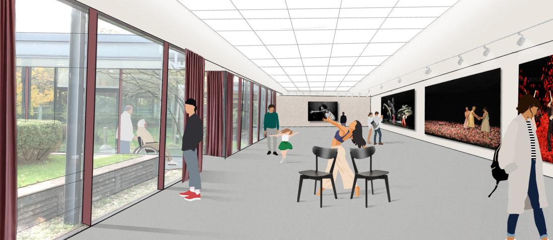 Auf der Kulturinsel findet der eingeschossige Neubau seinen Platz. Hier soll sich in Zukunft das Partizipationsforum Wupperbogen befinden. Es bildet den Querschnitt aller Handlungsfelder im Pina Bausch Zentrum und ist ganztags ein öffentlicher Ort für die Gesellschaft. Durch die Transparenz und seine geringe Höhe des Gebäudes fügt es sich gut in die Umgebung ein. Außerdem bilden sich neue Außenbereiche, die in Zukunft als begrünte Fläche die Aufenthaltsqualität steigern. Mit seiner großen, auskragenden und umlaufenden Terrasse kann der Ort rund um die Uhr genutzt und bespielt werden. Die milchige Außenhülle des Gebäudes schützt den Innenraum und zeigt dennoch die Bewegung im Innenraum.