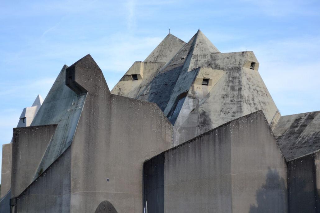 Der Mariendom im Wallfahrtsort Neviges ist einer der bedeutendsten Kirchenbauten des 20. Jahrhunderts. Die einzigartige Beton-Faltwerk- Konstruktion über frei-polygonalem Grundriss überspannt eine Grundfläche von ca. 2.800 Quadratmetern und ist ein Hauptwerk des Architekten und Pritzker-Preisträgers Gottfried Böhm (*1920 † 2021). 1968 wurde von Kardinal Frings die erste Heilige Messe im Mariendom gefeiert. Seit 1995 steht er mit seinen angrenzenden Gebäuden als Ensemble unter Denkmalschutz.