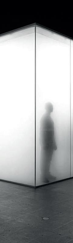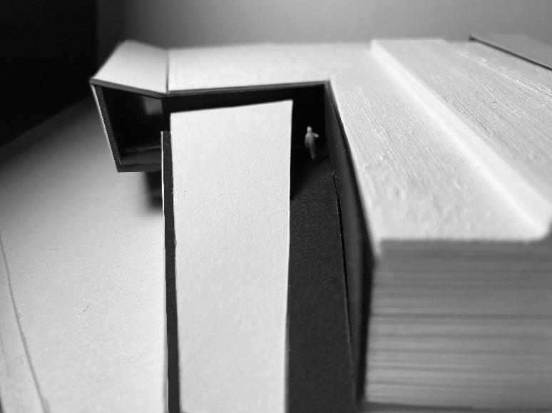Die transluzente, milchige Hülle lässt die Bewegungen ablesen und soll die Neugierde wecken, das Innere zu erkunden und somit auf das unscheinbare Gebäude aufmerksam machen.