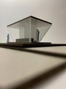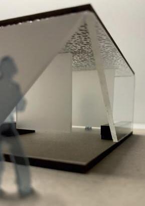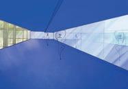 Transluzente und milchige Glaselemente lassen die Bewegung im Inneren ablesen, bieten dennoch Privatsphäre und Blickdichte,eswirdfürGebäudehüllenund Informationsflächen eingesetzt. In Bereichen in welchen Transparenz und Durchlässigkeit erwünscht ist, werden klare Glaselemente verwendet. Als Verbindungs- und Konstruktionselemente wird ein pulverbeschichteter Stahl verwendet, der den Farbton der Schwebebahn hat.
