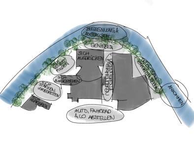Besonderheit: Es erfolgte eine filmische Dokumentation des Entwurfsprozesses durch die Teilnehmer. Ziel ist es das Medium Film als ideales Medium für die Darstellung von Bewegung im Raum kennen zu lernen, zu nutzen und für eine Vermittlung des Entwurfs zu verwenden. Siehe dazu auch Hinweise auf der moodle-Kursseite und Abgabeleistung.