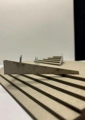 Das Modul für die Wupperufer besteht aus zwei Elementen, die an den jeweiligen Orten gemeinsam oder einzeln positioniert werden können. Der eine Teil des Elements stellt eine Sitztreppe dar, welche als Aufenthaltsort oder Ort des Zusammenkommens und Kommunizierens genutzt werden kann. Er ist in Richtung Wupper ausgerichtet.