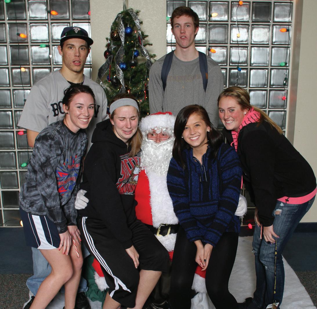 From 2010, members of the men’s basketball team let Santa sit on their laps during the Cafeteria Santa Dinner.