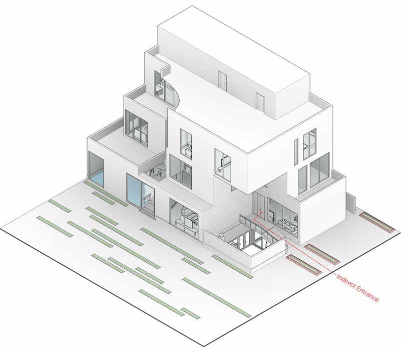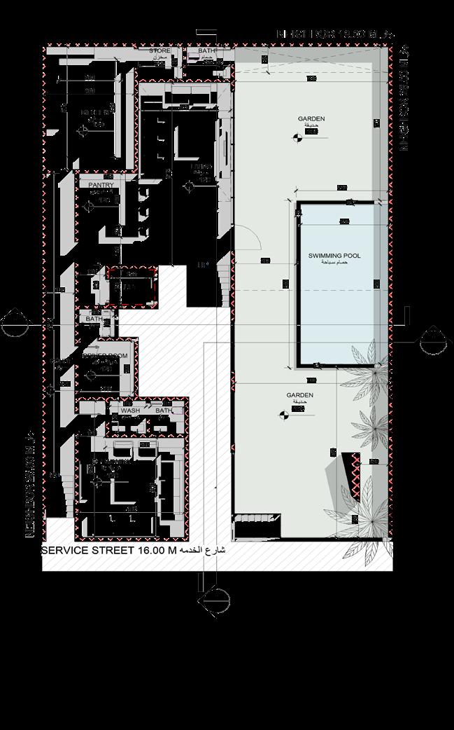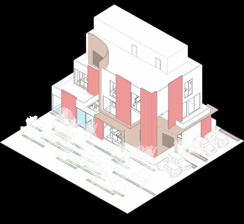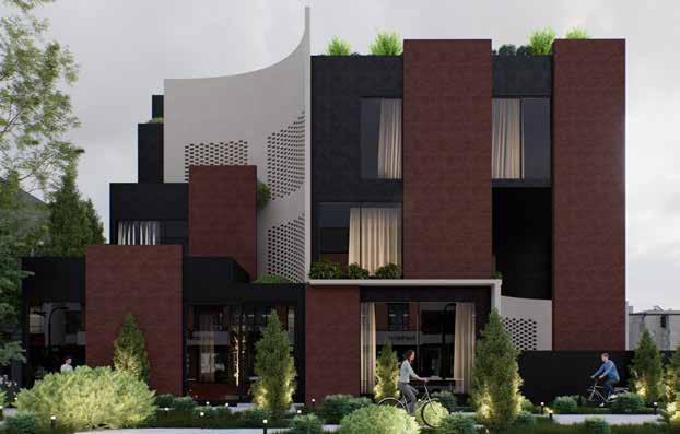 Embodies the fusion of traditional Kuwaiti architecture with modern living solutions. This project incorporates large, shield-like screens enveloping the structure, providing both privacy and shade. The brick walls, a nod to traditional elements, are designed with openings to ensure natural light and ventilation flow seamlessly into the core of the residence, balancing tradition with contemporary comfort. The open courtyard promotes natural ventilation and diffused sunlight, while the traditional, fractured entrance offers privacy even when the door is open.