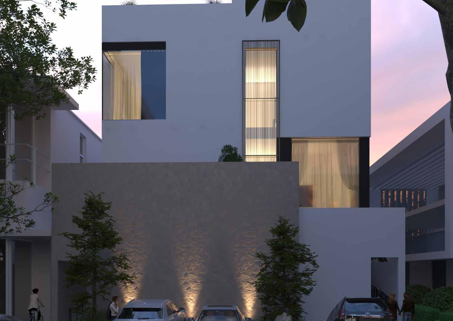 A 400-square-meter private residential residence distinguished by its floating geometry from the ground planes to allow for sheltered outside garden space, allowing for privacy, protection from the sun, and a pleasant view from inside-out. Furthermore, the open plan layout allows for smooth horizontal and vertical movement while ensuring that every space is exposed to natural light and that the primary spaces face the garden below.