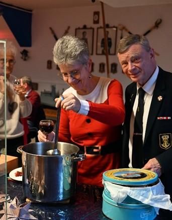 22 November: November måneds lørdagsfrokost bød som altid på stor opbakning. Hele 36 medlemmer kiggede forbi til det store kolde bord – med et strejf af lune retter og masser af god stemning. Julestemningen havde allerede sneget sig ind i marinestuen med juletræ, røde og grønne dekorationer og nisser på loftet, hvilket satte den perfekte ramme for en hyggelig eftermiddag. Timerne fløj af sted med livlig snak på kryds og tværs, latter og godt kammeratskab. Ved 16tiden rundede vi stille og roligt af, lukkede stuen og satte kursen hjemad – med smil på læben og en god fornemmelse af fællesskabet. Tak til alle, der deltog og var