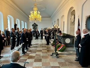 senteret sammen med Marineforeningen, veteraner og maritime venner, der alle var mødt for at hædre Tordenskiolds mod, snarrådighed og indsats for Flaaden under Den Store Nordiske Krig. Efter gudstjenesten og kranselægningen fortsatte fejring og kammeratskab på Kastellet, hvor selskabet overrakte den prestigefyldte Tordenskioldspris 2025 – en hæder, der kun gives ved særlige lejligheder og sidst blev uddelt i 2017.