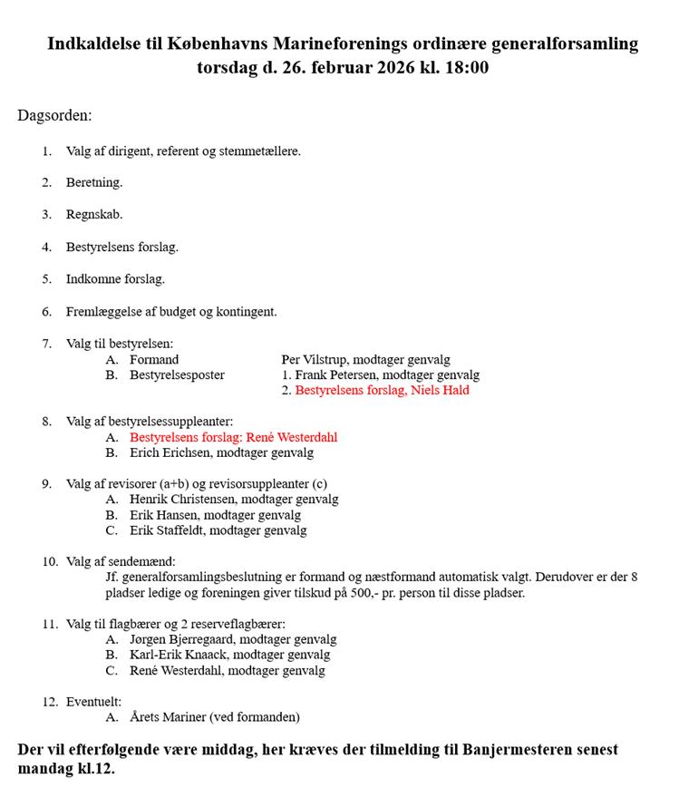 Jeg ser frem til at møde jer i foreningen og til endnu et godt år i Københavns Marineforening.