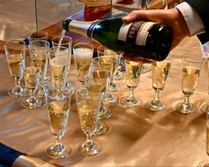 Ny verden, nye barer. Hér var en spand i Mærsks farve, og adgangsbilletten til bordet med spanden på var at fylde en flaske sprut i. Hvad som helst.
