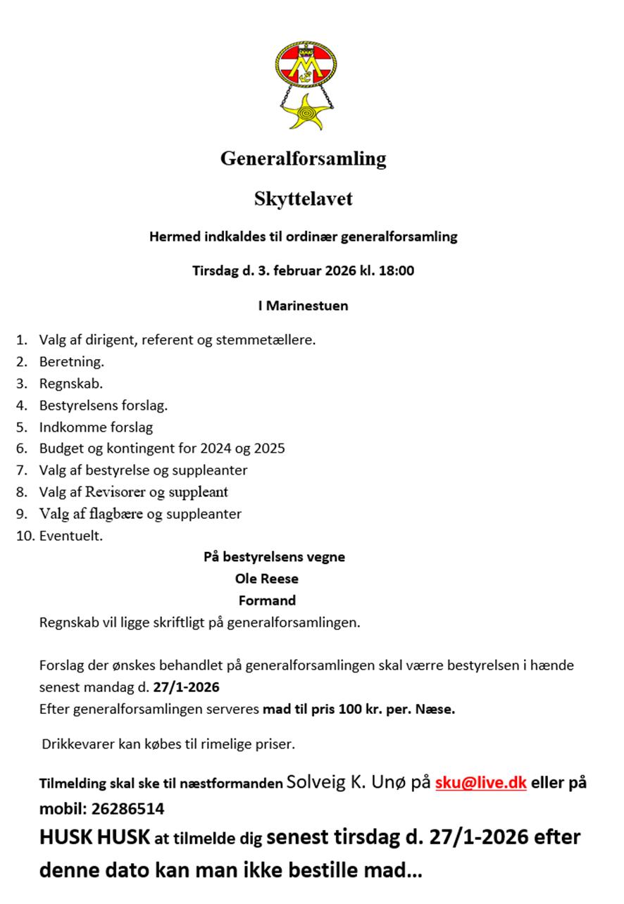 2/3 Generalforsamling Holmen 18:00 Ole Reese