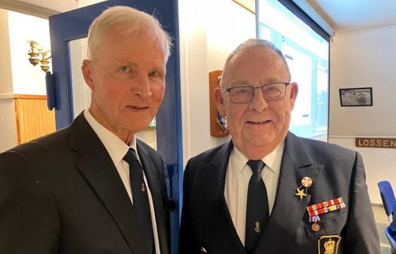 O.P. Nielsen modtages af næstformand KarlErik Knaack i Marinestuen.